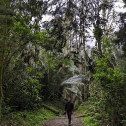 La Vallée de Cocora se trouve dans le Parc Naturel National de Los Nevados, on s'attendait donc à un shot de nature. Mais que nenni, quand il y a de l'argent à se faire les colombiens ne lésinent pas : resto, café, balades à cheval, tour en vélo, visites guidées, lettres géantes et photos payantes... On s'éloigne vite de ce Disneyland pour commencer une rando au milieu de la forêt tropicale et humide. On nous a dit qu'il y avait plusieurs rando, dont une de 12km qui amenait à une réserve de colibris. Finalement après 1h30 de marche, il se met à pleuvoir, c'était prévu donc on est pas surpris. On croise la route de deux cowboys colombiens et on leur demande si c'est bien par là la Casa de los colibris. Ils rigolent doucement et nous disent de rebrousser chemin, que c'était à la sortie de Disneyland. C'est donc ce qu'on fait en enfilant nos k-way et en espérant que la pluie ne forcisse pas car ça risquerait de devenir vraiment glissant.