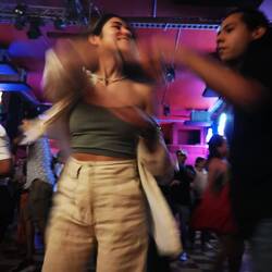 À l'intérieur il y a une grande piste de danse entourée de table. Les gens assis regardent les danseurs et danseuses et à chaque fin de musique la piste se vide pour laisser la place aux suivants. Une cerveza plus tard on prend notre courage à deux mains et on se lance en essayant de reproduire les quelques pas appris plus tôt. C'est stressant mais on essaye de se détacher du regard des autres et de s'amuser. Finalement on y arrive.