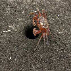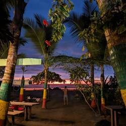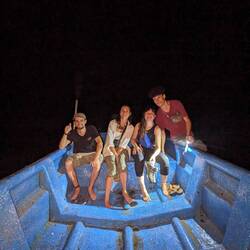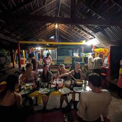 On n'a pas encore testé la vie nocturne ; ça tombe bien on a entendu parler d'une soirée sur une île. Après 30min de marche dans le sable à éviter les vagues, les crabes, les cocotiers et les arbustes divers on a dû négocier avec des passeurs en barques pour pas payer trop cher la traversée de l'embouchure du fleuve. On fait 30 mètres tirés par le "passeur" avant de débarquer au milieu du delta parce que 20cm d'eau c'est pas assez pour la barque et on finit les 50 derniers mètres les pieds dans l'eau. Tout ça pour se faire se faire agresser par des poissons, des oiseaux, des crabes géants, des crapauds puis par des oies à l'arrivée. Malgré ces tentatives d'intimidation on arrive sain et sauf. L'endroit est magnifique, on est un peu seul au monde. On restera quelques heures avant de faire le chemin inverse.Read more
