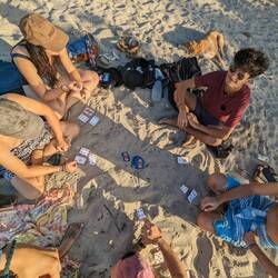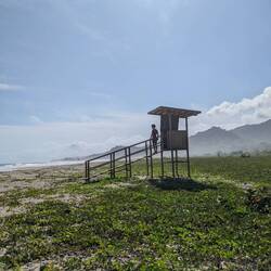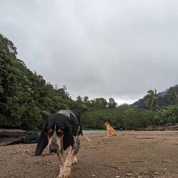 Le même schéma que la veille se répète et après à peine 50min et +320m de dénivelé on est déjà cassé. Heureusement le reste de la journée sera moins pentu. Le chemin de randonnée passe à côté d'un village Kogi, les habitants locaux et indigènes du parc. Heureusement depuis cette année le village est fermé aux touristes, ils peuvent donc garder un semblant de tranquillité. Ensuite on traverse quelques plages avant d'arriver à la plus connue Cabo San Juan, elle est connue pour sa pointe de sable surplombée de rochers eux mêmes surplombés d'une hutte. L'endroit est magnifique mais assez touristique, ça nous fait bizarre d'arriver sur cette plage bondée après avoir passé plus de 24h loin du monde. On comprend que la plage est aussi accessible en bateau et pas seulement par les chemins escarpés qu'on a empruntés. Après s'être baignés et restaurés on part à la recherche d'un endroit où dormir. On trouve des hamacs dans une sorte de camping / ferme moins paradisiaque que la veille mais ça nous va. On accède à la plage à pied en 5min, il est peu recommandé de s'y baigner car il y a des caïmans. On joue aux cartes de nuit, éclairés à la frontale et on se croit vraiment seul au monde.