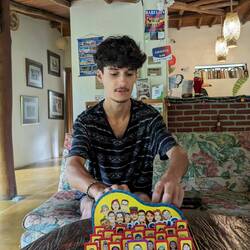 Ensuite on décide d'aller visiter la Linterna, la plus ancienne imprimerie artisanale de Colombie encore en activité. Ils ont 2 machines datant des années 1870 et venant de Paris et New York. On visite l'atelier avec Olmedo qui nous montre comment il utilise l'une des machines, il prépare des affiches pour l'un des théâtres de Cali. La Linterna c'est l'atelier mais aussi un shop, Télio et Alex font péter le portefeuille en affiches, stickers et autres souvenirs (je reste raisonnable je n'ai pas de place dans mon sac).