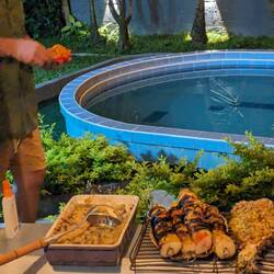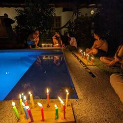 Le 7 décembre c'est El día de las Velitas (la fête des bougies) à cette occasion les colombiens allument des bougies dans les maisons et dans les rues en faisant des voeux. Le personnel de l'hostel nous propose d'allumer des bougies autour de la piscine en leur compagnie puis de manger avec eux.