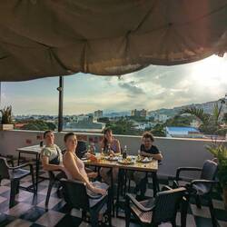 Alex pousse la chansonnette depuis le rooftop de l'auberge et de bon matin pour finir de nous réveiller.
