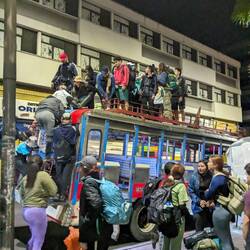 Une dernière nuit dans la chaleur écrasante de Villavicencio et nous voilà parti pour 3 heures de bus direction Bogota. Enfin ça c'est ce qu'on croyait. En réalité on passera la journée dans le bus de 9h à 22h ; il y a des manifestations sur l'unique tunnel pour rejoindre la capitale et on doit donc faire un détour de 11h. Les aléas du voyage.