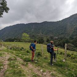 Aujourd'hui on n'est pas très sûr de notre itinéraire. On a contacté une finca pour ce soir dans le but d'atteindre un lac d'altitude puis de rejoindre une autre finca le lendemain, y prendre une jeep qui nous amènerai en ville pour enfin prendre un bus qui nous amènerai à Salento où on espère retrouver Sam (sans réseau depuis 2 jours on ne sait pas ce qu'il fait et où il est). Mais nos nouveaux amis et l'hôtesse du lieu nous recommandent un nouvel itinéraire car les Jeep qu'on espérait trouver son apparemment excessivement cher et à réserver en avance. On décide donc de suivre leur conseil et après un adieu à la Finca Berlin et un à bientôt à nos 4 nouveaux copains on se met en route alors que l'herbe est encore gelée sous nos pas.