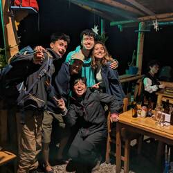 Vers 18h30 on se glisse dans la cuisine/ salle à manger/ salle de vie qui est réchauffée par le feu de la cuisinière et on a le plaisir de retrouver 4 français qu'on avait croisé sur le chemin hier. Ils ont eu une journée encore plus éprouvante que la nôtre car ils sont montés à 4700m et se sont largement perdus aussi.