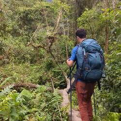 Au début le chemin nous paraît agréable, les paysages sont beaux, on est à l'abri des arbres, on entend le torrent, on voit des cascades au loin mais rapidement il devient difficile voir presque impraticable. Soit on descend dans des pierriers qui demandent toutes notre attention et de bien s'appuyer sur les bâtons soit on marche dans le lit d'une rivière et on doit naviguer entre sauter de rocher en rocher ou patauger dans la boue.