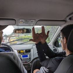 Pendant le trajet on a le temps d'apprendre à le connaître et de comprendre pourquoi il nous a gentiment proposé de faire le taxi. Il adore la France et le français, il prenait même des cours à l'Institut Français avant que celui-ci ferme la classe faute d'élèves. Il nous explique aussi qu'il est fier de son pays et qu'il a envie qu'on en garde un bon souvenir. C'est donc simplement un acte de générosité. Ces dernières semaines nous avons rencontré pas mal de colombiens ou colombiennes de tous les âges et souvent en ressort une générosité immédiate ; une invitation à manger, à dormir chez elle, à faire le taxi... J'espère pouvoir ramener un peu de cette générosité et cette bienveillance avec moi.
