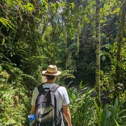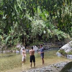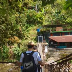Le lendemain on retourne faire la même marche mais cette fois pour aller chez une amie du frère. Claudia vit dans une magnifique Finca perdue dans la jungle. Elle profite pleinement de cet endroit qu'elle a hérité de sa mère après avoir été prof d'espagnol pendant 25 ans à Paris. Elle nous fait faire le tour du domaine, on aperçoit des singes se baladant dans les arbres autour avant d'aller se baigner dans une cascade pour se rafraîchir. Puis elle nous invite à rester pour le déjeuner.