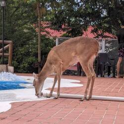 On décide de faire au moins une activité c'est la descente de la rivière en bouée ainsi qu'une petite tyrolienne. On s'amuse quand même bien. On finit la journée autour de la piscine (une biche viendra nous rendre visite) avant d'être chassé par la pluie.