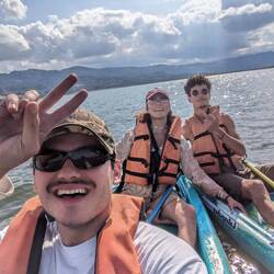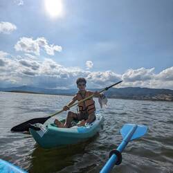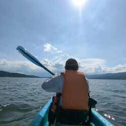Après une bonne nuit dans la tente et une partie de Catan on décide d'aller faire du kayak sur le lac. On a les locations pour 1h. On rame jusqu'à une petite île puis on fait demi tour, c'est assez court mais suffisamment pour sentir les courbatures arriver dans nos bras.