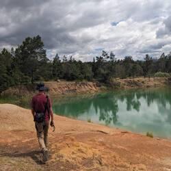 Malheureusement la Colombie subit une énorme période de sécheresse depuis 3 mois et puise dans ses réserves d'eau pour alimenter les habitations mais aussi pour éteindre les feux. Le lac (artificiel) est donc assez vide comparé à son niveau de novembre (la première fois où on était venu). L'eau a baissé d'environ 20 ou 25 mètres c'est assez impressionnant.