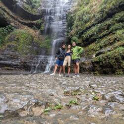 Pour commencer ce séjour : randonnée sur les hauteurs du village pour admirer une cascade (et s'y rafraîchir pour les plus courageux et courageuses), observer les plantes, les oiseaux, les papillons et les libellules. On s'abrite dans un café/ mirador le temps qu'un gros orage passe et on continue le chemin au milieu des champs de bananiers.