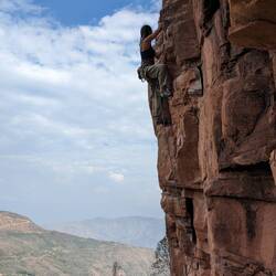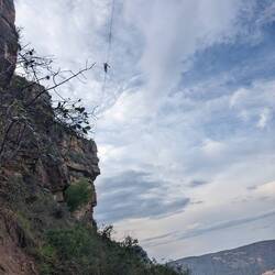 Le but de venir ici c'est de grimper les falaises qui sont accessibles à 5 minutes à pied. Le problème c'est que je n'ai pas de matériel (corde, harnais, dégaines etc...). J'ai seulement mes chaussons d'escalade avec moi. Heureusement je rencontre vite d'autres voyageurs qui ont du matos. Dès le lendemain je pars donc avec un canadien, un espagnol et un italien pour découvrir les falaises.