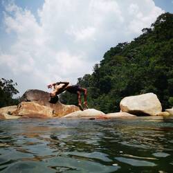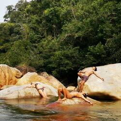 Le jour suivant, c'est déjà notre dernier jour sur cette plage, on retrouve Fidel Castro et son bateau pour qu'il nous amène à la cascade du tigre. Cette cascade se jette sur la plage, mais l'intérêt c'est surtout de remonter le lit de la rivière pour sauter des rochers et se baigner.Leia mais