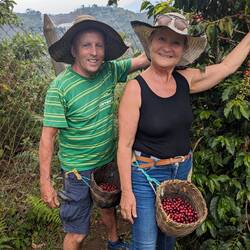 Le lendemain c'est visite d'une finca de café, là encore c'est la 3em fois pour Télio et la 2em pour moi. Télio peut presque nous faire le tour de la petite exploitation familiale sans guide. On est plus efficace que la première fois que je suis venue, nos paniers sont presque pleins et l'agriculteur hésite à nous employer pour ramasser les grains de café ! On finit la visite comme elle a commencé ; par une dégustation de café avant de prendre le chemin du retour direction Jardín à bord d'une jeep/taxi.