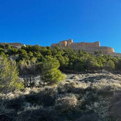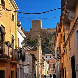 We are now in Almansa, eager to walk again tomorrow. We skipped a bunch of earlier walking stages so that we can make it to Toledo. Above Almansa hovers a big castle, to be seen from all sides.