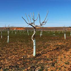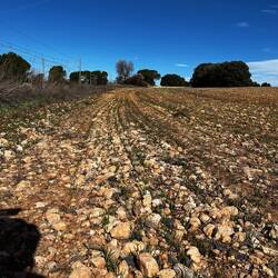 Vandaag een kortere wandeling tussen de wijngaarden en een enkele olijf boomgaard in een iets meer geaccidenteerd terrein. Een heel enkele keer zien we kleine boompjes waarvan ik niet kan achterhalen wat het is. Fruitbomen? maar wat dan. Geen sinaasappels want die hebben nu nog blad.