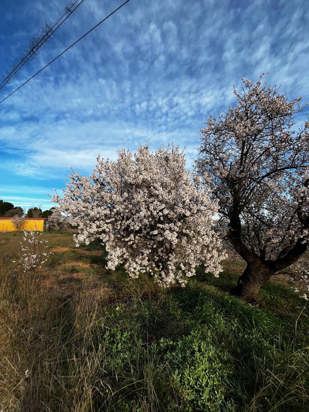We walked towards the mountains in the west and went left around it. Lots of almond trees in blossom. And incredible how they can get crop out of ‘fields of stones’.