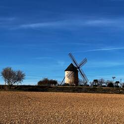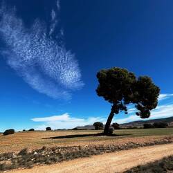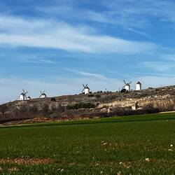 Vandaag meer variatie, nog steeds vlak maar nu met meerdere bossages die her en der in het landschap verschijnen. Het is het landschap waar Don Quichote vandaan komt. Je ziet hier tal van verwijzingen naar.