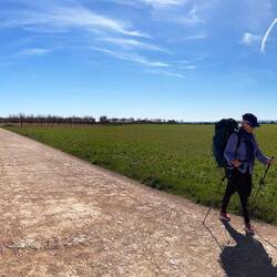Halfway through the day, we meet our first fellow pilgrim. He caught up with us. Martin is from Australia, and since catching the hiking bug, he's been making the most of the three months a tourist can stay in Europe. He walks crisscross through Spain in those three months. "You're debigetsout," he says. He'd been following Debi's blogs on the Camino forum….