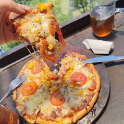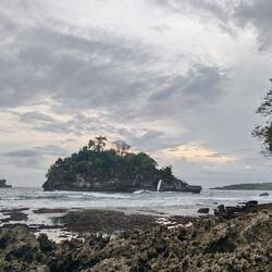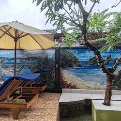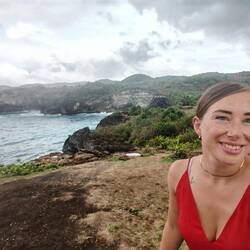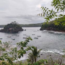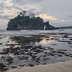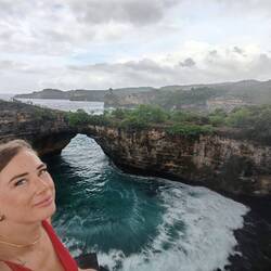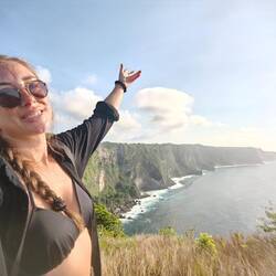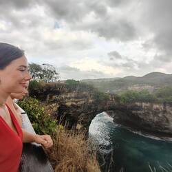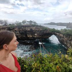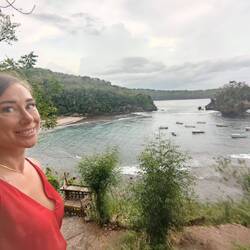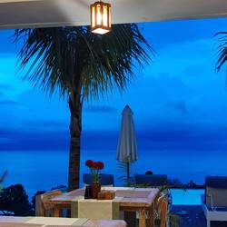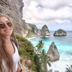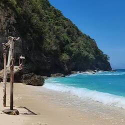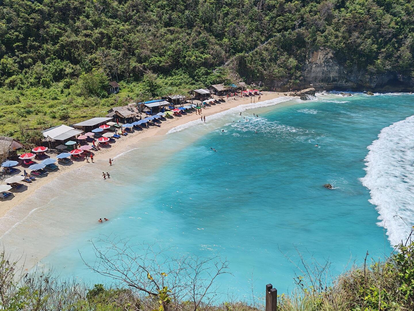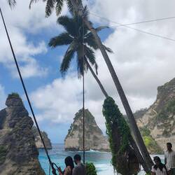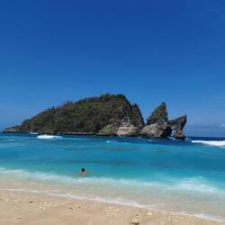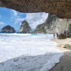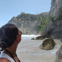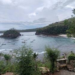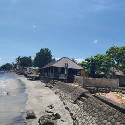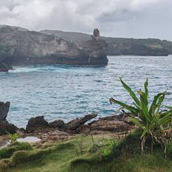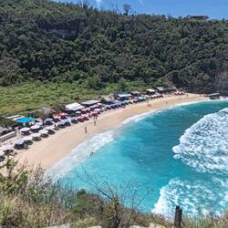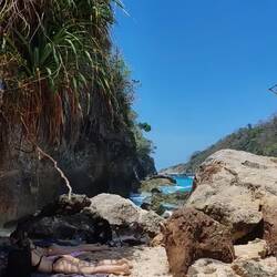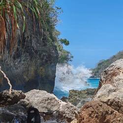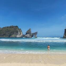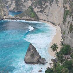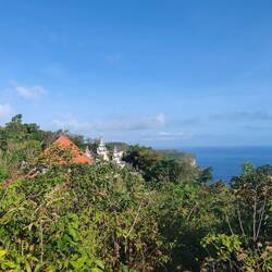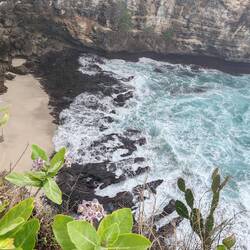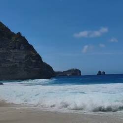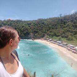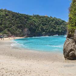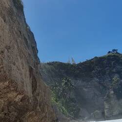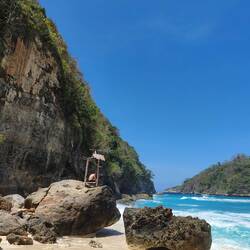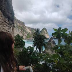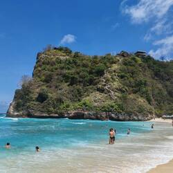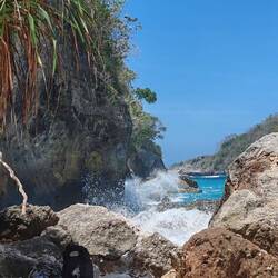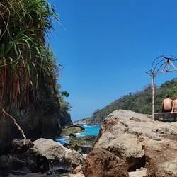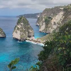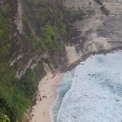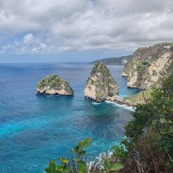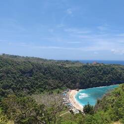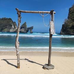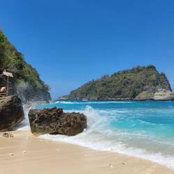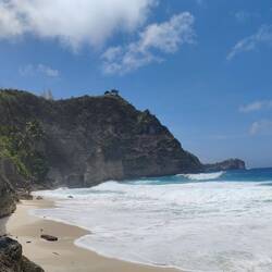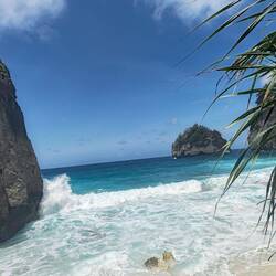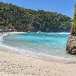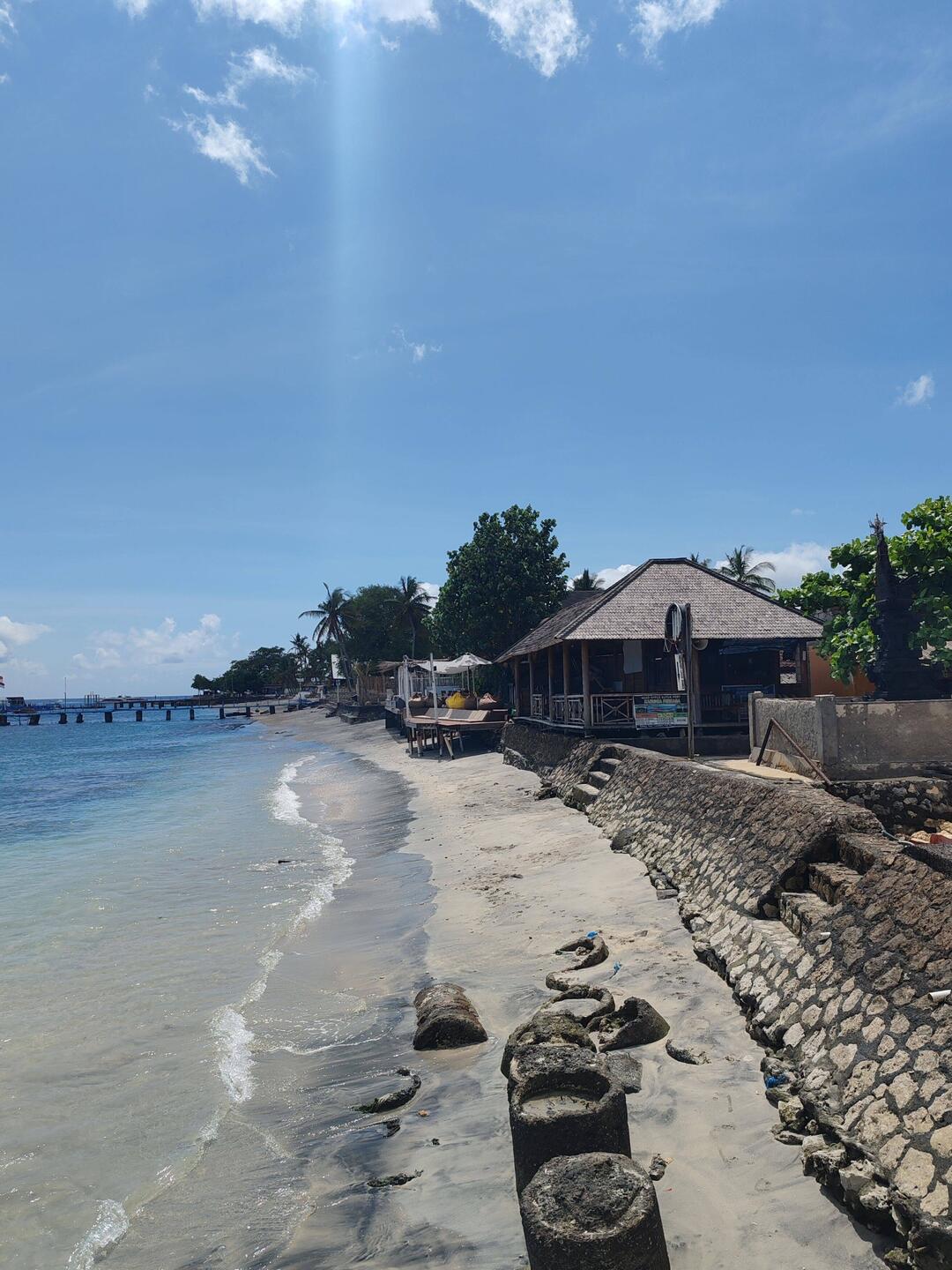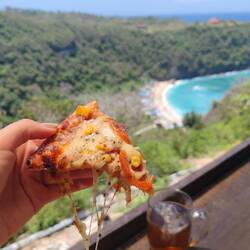 There was a restaurant at Diamond Beach where I had a beautiful view to Atuh Beach. The Pizza tasted sweet - so weird.