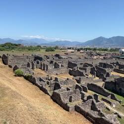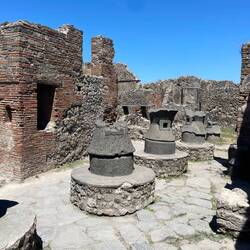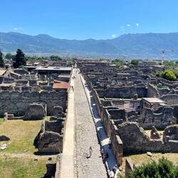 When walking around it is amazing to see the stepping rocks they used when the streets flooded & that the stepping stones still fitted a cart through them when not flooded. I was expecting Mt Vesuvius to be a lot bigger seeing the destruction it caused, It was pointed out in the tour that if you draw a triangle between the two points left now, this would of been height of it before the eruption. The people of Pompeii had 7 days of grumbling from the mountain before it erupted but they were still shocked what was happening!