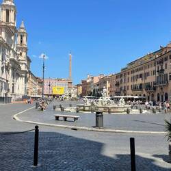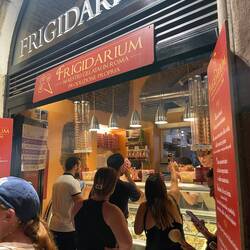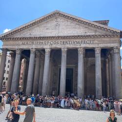Next street we walked down is Via del Governo Vecchio, this is also a cobbled street with shops and restaurants with lively palazzos. Also home to the famous Frigidarum gelato store, we had to try some! So Katie got the lemon flavour that tasted like freshly squeezed lemon, I opted for cookies and chocolate! We walked past the pantheon the temple built 118-125AD, line was massive and they now charge for entry so we moved on to get some lunch.