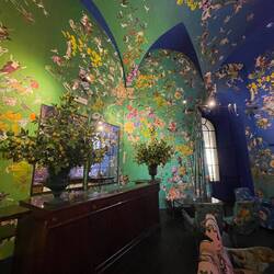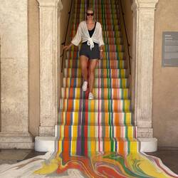 We went to Chiostro del Bramante which is a cultural space hosting classic art exhibitions, we went there as the cafe has painted walls & roofs. The stair are done by an artist that let the paint run down the stairs not letting colours touch each other until the landing as well.