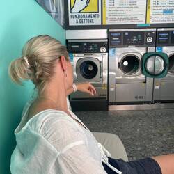 We went back to the hotel and opted to go to the laundromat, this was the highlight of Katie’s day watching the machine spin around and around 😂