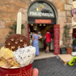 We then walked over to Frigidarium for more Gelato - this time there was a line but it moved quickly. We were served by the owner it seemed, he got Katie her Lemon & Liquorice flavours, I then asked for strawberry, couldn’t decide on the rest so he chose peach and yoghurt to go with it. It was amazing and I was very happy with this!