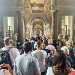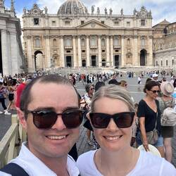 After the provided breakfast at the Vatican (Italians can’t cook eggs but can make a great pancake) we made our way through the masses, we dodge, duck, dived and weaved through the crowd - it was humid too - so we skipped going back through most sites as once you’ve seen a few statues, you’ve seen enough of them in that heat! We went onto St. Peter’s Basilica through an entry point off the Sistine chapel the tour guide told us about so we didn’t have to line up for 3 hours!