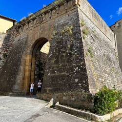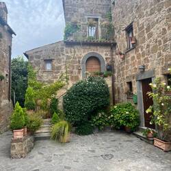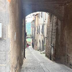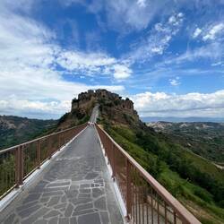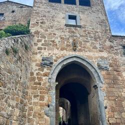 Along the way we decided to head to a small village called Bagnoregio so we could walk to the hilltop village of Civita di Bagnoregio. C ivita di Bagnoregio is a hilltop village in central Italy. It’s accessed via a pedestrian bridge from the nearby ticket office in Bagnoregio village. The Porta Santa Maria gateway was built by the Etruscans. Founded in the 7th century, the Romanesque San Donato Church sits in the main square.
