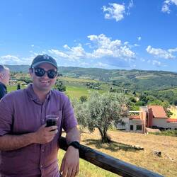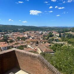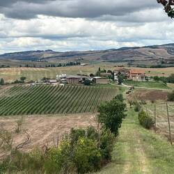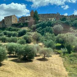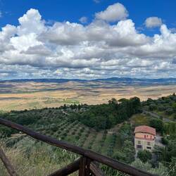 We made it to our BnB, Gianni made us feel very welcome along with his Sausage Dog. He makes wine himself so he had a bottle of Red wine for us (I may be half way through it now writing this - Katie will proof read this for me!) It is a lovely BnB with a lot of land and breath taking views.