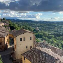 We knew we had to sort dinner so we drove back to Montepulciano and parked the car. Went into a local grocery for supplies and browse the weird and wonderful things - milk cartons that contain wine! - we then booked into dinner at La Vineria di Montepulciano, number one on trip advisor for their cheese and meat boards for 7pm. We had an hour to kill so walked around the beautiful village of Montepulciano, taking in the views from the hill where we could and the amazing buildings.