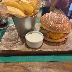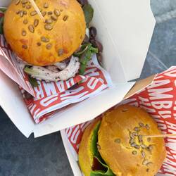 After ordering off translate, we sat down and waited for our food, in the mean time the owner gave us deep fried mozzarella & deep fried some sort of pasta in a ball, delicious. Then the burgers came out, I had grilled chicken with caramelised onion and zucchini sauce while Katie had Parma Ham with salad in sliced Carsareccio Bread.