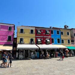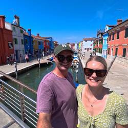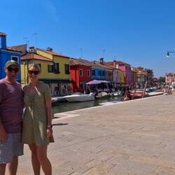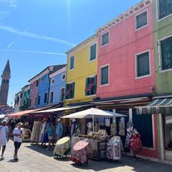 We got to Burano, it is famous for Lace museum, the bell tower that is leaning (told Katie as we missed Pisa she saw something leaning!) and the colourful houses as this is a fishing island.