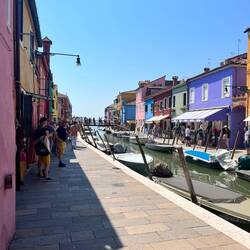 We walked around and it was peaceful before masses of tourists arrived and every shop wasn’t open yet. There were some shops we walked into that the owners wouldn’t even acknowledge our existence so made sure we didn’t hang around in them. We finally found a place that was happy to let you watch their glass blowing at Wave Murano Glass, though you may enter the factory, you must leave via their showroom (some may say gift shop, typical Europe) By this point I had enough of glass and it was getting busy so we got the ferry to Burano… Now I moo’d as we got onto this ferry, but cattle trucks have better conditions than these ferries, we were packed in like sardines and it was hot. Least cattle get water and a feed!