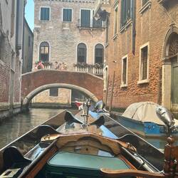 I had booked a gondola ride for Katie & I at 6pm so we trotted off to that, it was excellent, Chiara our gondolier took us downtown the back canals of the Jewish Ghetto and surroundings. She let us know about the buildings we were seeing and stories about them, she even sang us a little song at the end that Katie wanted to shrivel up and die at this point! I thought is was hilarious as I knew that was the one thing Katie wanted to avoid! Katie admitted she was nervous how close the gondola was to walls and other boats and had to reframe from saying anything… least it’s not just my driving she wants to use her pretend pedals!