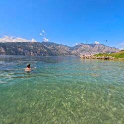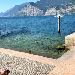 We ended up north side of Malcesine, the village has a medieval castle lakeside, we opted for a walk into the village and lunch here. I was feeling a wee bit under the weather from the amount of wine, I may or may not of consumed yesterday, so we had burgers and chips for lunch. We walked through the village and started to head back to the car, it was getting hot and we wondering if we swim here or back at Bardolino (The real troubles on holiday) I was hot and bothered and feeling like I needed something to put a spring in my step, so we walked back to the car, got changed and headed 2minutes away from the car to a little pebble beach.