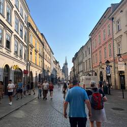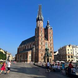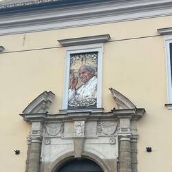 We moved into Market square, Europe’s biggest open air market square! With St. Mary’s Basilica a focal point of the square. We moved down to the university learning about the buildings and war time, and then onto Okno Papieskie. An artwork on the window where Pope John Paul II talked to a crowd of singing young people when he visited when Poland was still under communist ruling.