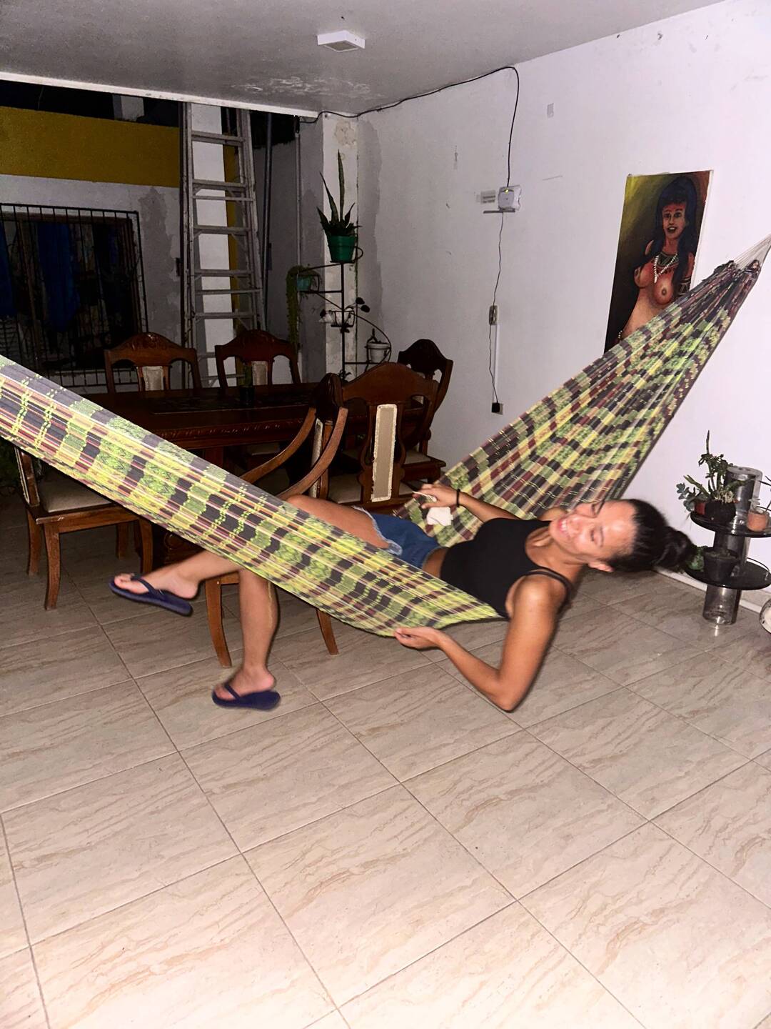 Nemmeno il tempo di atterrare che impanicate abbiamo iniziato a riempirci di autan, continuano quindi i disagi soprattutto per Giulia che non capisce come si sta su un’amaca…