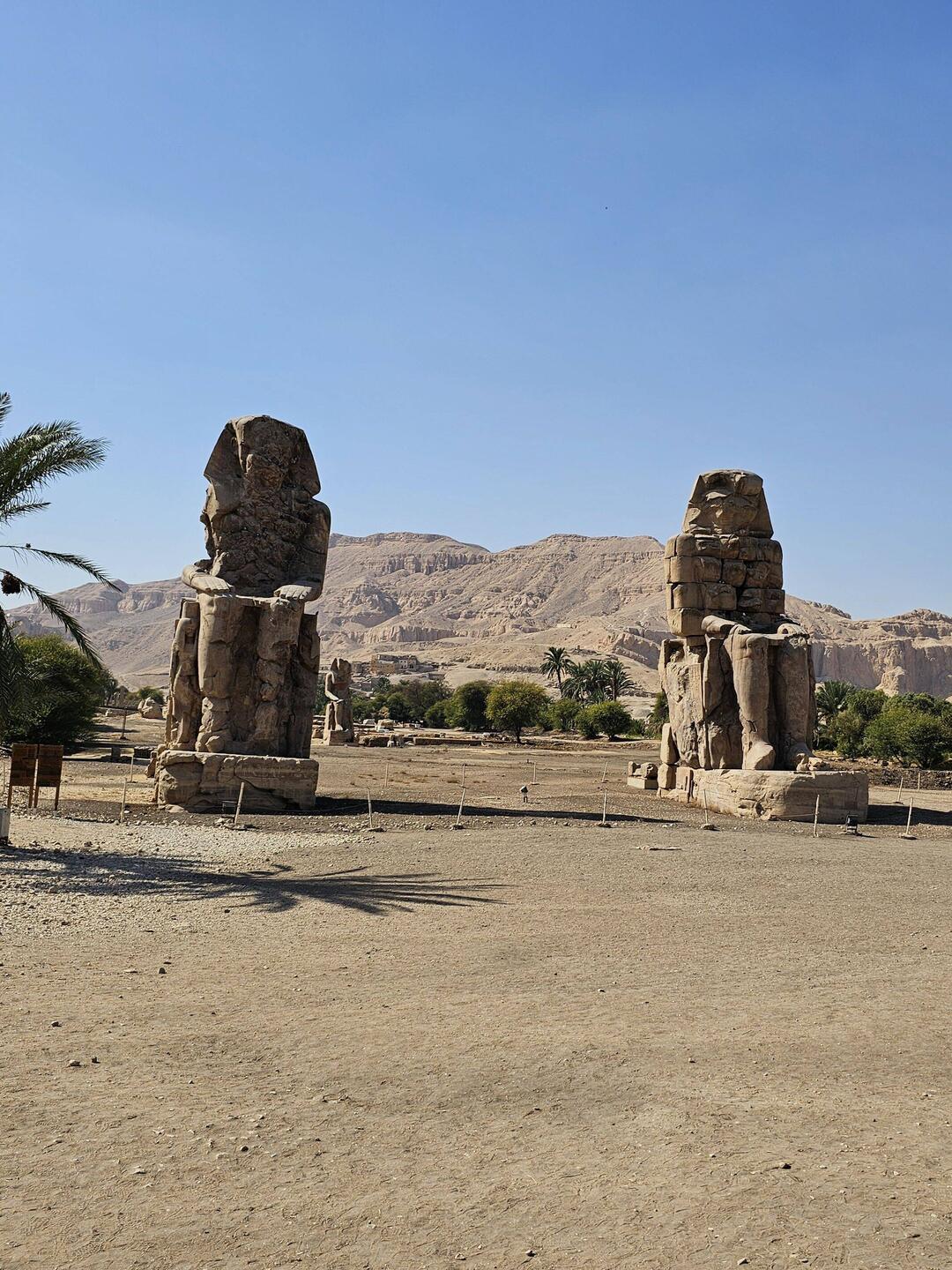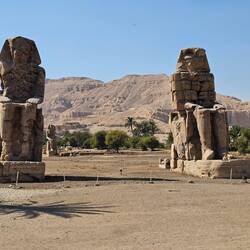 Auf der Rückfahrt zum Hotel machen wir noch einen kurzen Stopp bei den drei Memnonkolossen aus dem 14. Jahrhundertv. Chr..