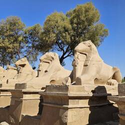 Heute früh fahren wir zur größten Tempelstadt Ägyptens in Karnak, nur ca. 2,5 km entfernt von Luxor und direkt am östlichen Nilufer gelegen.