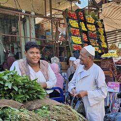 Von Kom Ombo aus fahren wir mit zwei Sammeltaxis zum traditionellen und farbenprächtigen Markt der kleinen Stadt Daraw, auf dem Tiere und landwirtschaftliche Produkte der Umgebung zum Kauf angebotenRead more