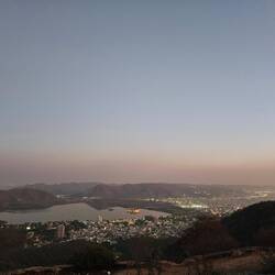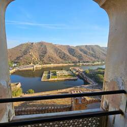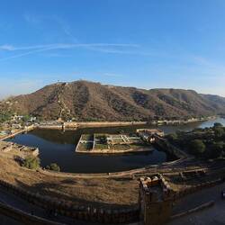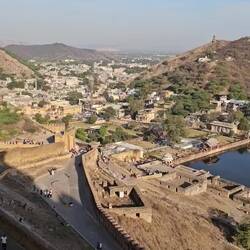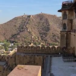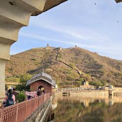Schon von Weitem sehe ich die Festung auf einem Bergkamm des Aravalligebirges, nur ca. 10 km von JaipurLæs mere