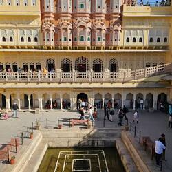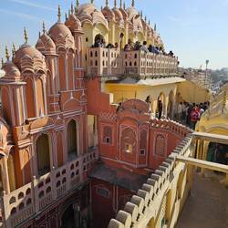 Tja, und jetzt laufen wir zu dem ganz in der Nähe gelegenen Wahrzeichen von Jaipur, zum Hawa Mahal, dem Palast der Winde, wobei es ja eigentlich nur um die einzigartige Fassade des Gebäudes geht,Læs mere