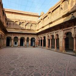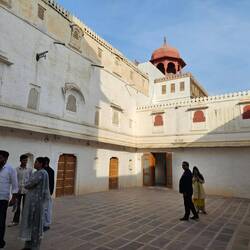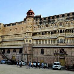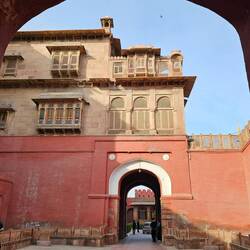 Mitten in Bikaner steht das weithin sichtbare Junagarh Fort, welches heute unser erstes Ziel nach ca. 7 Stunden Fahrt, aus Jaipur kommend, ist.