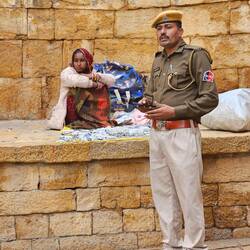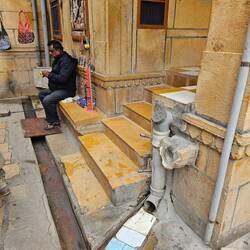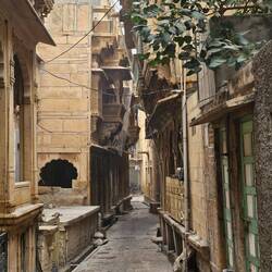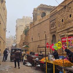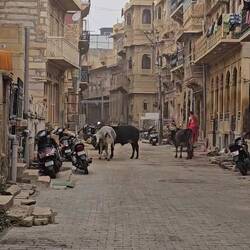 Nach dem Frühstück beginnen wir mit der Erkundung von Jaisalmer und laufen kreuz und quer durch die engen Straßen und Gassen und auch durch die oberhalb der Stadt trohnenden Festung.