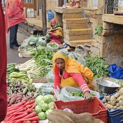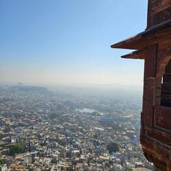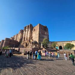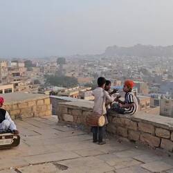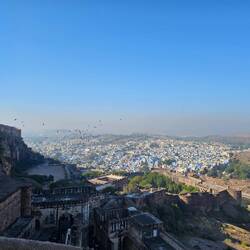 Zuerst fahren wir heute in die „blaue Stadt“ Jodhpur, die am östlichen Rand der Wüste Thar liegt.